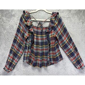 We the Free Womens Large Siena Plaid Pullover Ruffles Smocked Long Sleeve Preppy