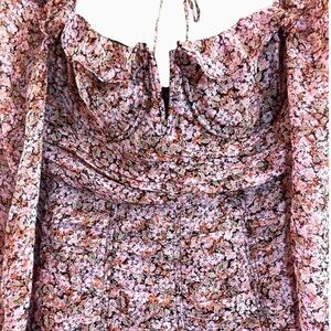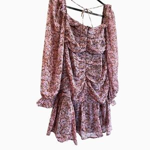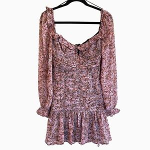 ASTR the Label Carmella Floral Smocked Mini Dress Puff Sleeve Ruffle Large