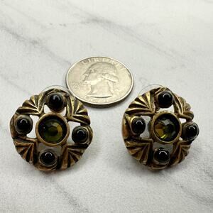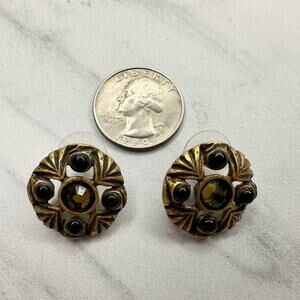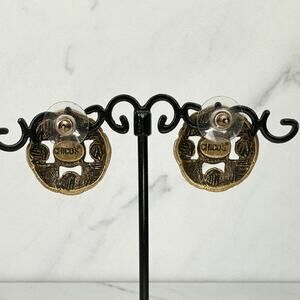 Chico's Vintage Boho Rhinestone Studded Gold Tone Earrings Pierced Pair