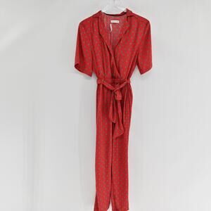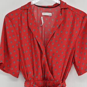 URBAN OUTFITTERS Womens Red Floral Jumpsuit Size XS Romper Belt Boho Chic Retro