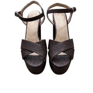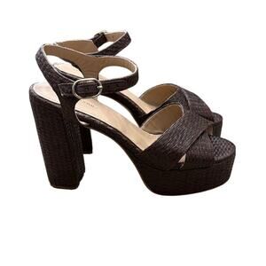 Andrea Gomez Bella Raffia Platform Sandals Heels Dark Brown Size 37 US 7