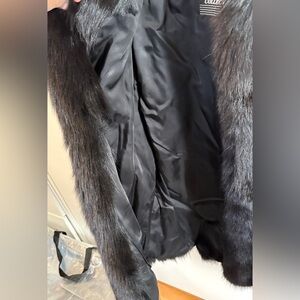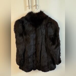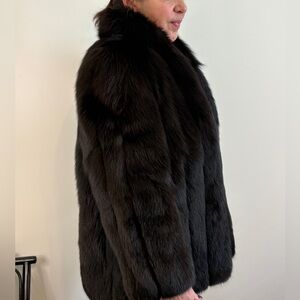 Luxurious, full-pelt real fox fur jacket in pristine vintage condition. This piece features dense, glossy fox pelts with long, soft guard hairs and a rich black tone. The fur is full and plush throughout with no dryness, bald spots, or shedding.