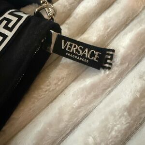 Sophisticated Versace messenger bag in black with white accents. Features iconic design and premium craftsmanship. Ideal for stylish men.