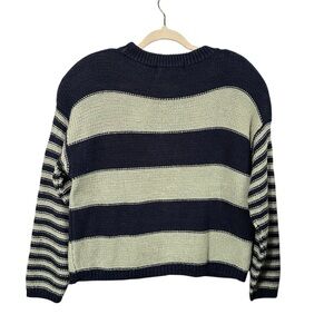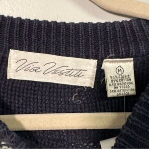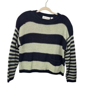 3. Via Vestiti - Vintage cotton blend dark blue and seafoam green stripe crewneck sweater. Tag says medium, will fit large Underarm - underarm measurement = 21”