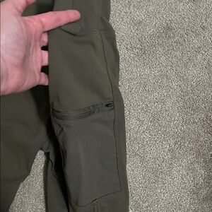 Size large. Color is Tarmac. Like a khaki green