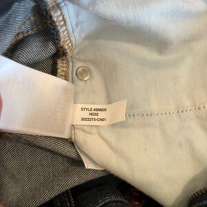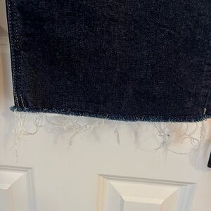 Classic dark blue denim jeans in Demi- boot cut with raw hem, in excellent condition! Approximate measurements:
