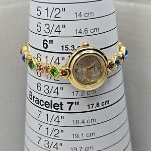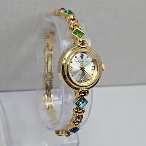 Kim Rogers Ladies Goldtone Multicolor Crystal Bracelet Watch Diamond New Battery