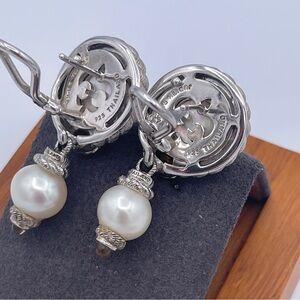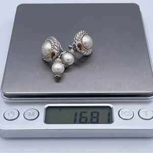 Judith Ripka Convertible Earrings 925 Sterling Silver Freshwater Pearl Citrine