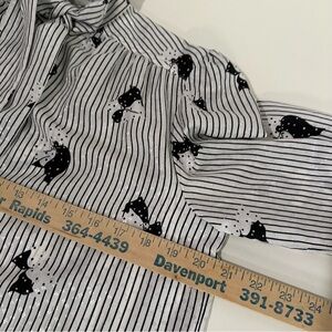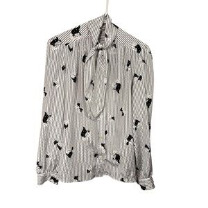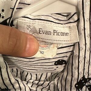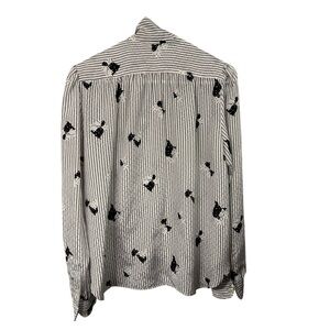 3. Evan Picone vintage black white print long sleeve tie-neck blouse top shirt. Tag says 10 fits like medium. see underarm measurements in photos.