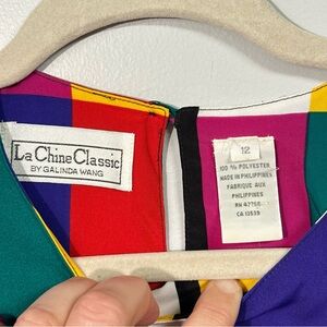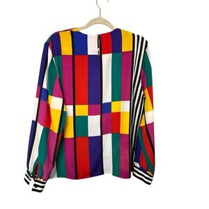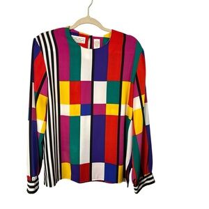 1. La Chine Classic, size 12 medium / large, vintage, bold, colorful long sleeve blouse. Underarm to underarm measures 21.5”