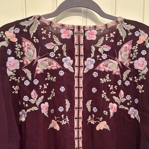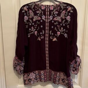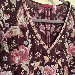 Johnny Was Women's Burgundy and Pink Floral Blouse