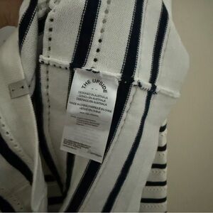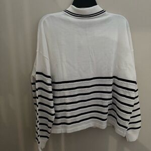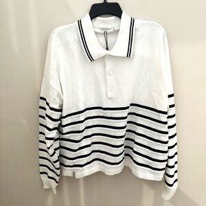 The Upside White Navy Wonder Striped Cotton Polo Collared Sweater