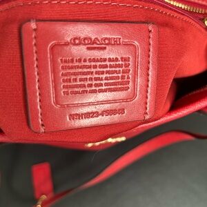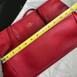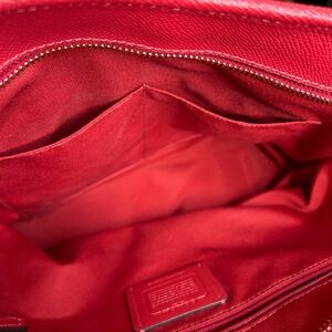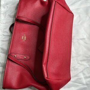 Stylish and spacious Coach tote. Rich scarlet leather. Ideal for daily use.