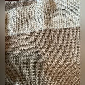 Trader Joe's jute tote bag with rope handles. Natural tan color. Item is in fair to good condition with some discoloration especially on back and inside front as pictured. It will also need to be reshaped.