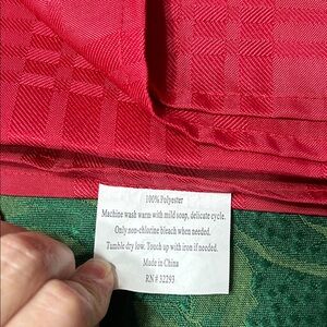 Bright red plaid fabric tablecloth.