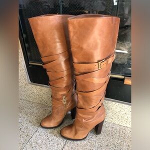 Sophisticated over the knee boots with wraparound straps. Perfect for a stylish look.