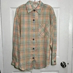 NWOT BIBI Sage and Peach Plaid Lightweight button down | size Large