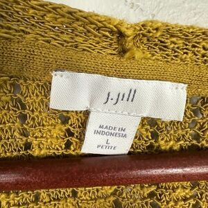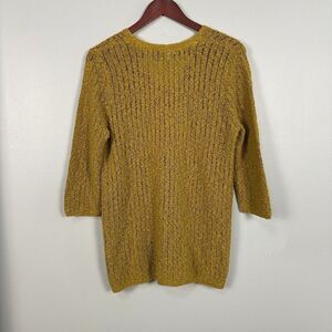 J. Jill Open Knit V-Neck Tunic 3/4 Sleeve Sweater Yellow Womens Large Petite