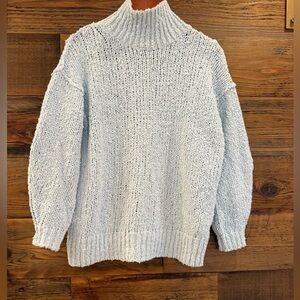 Tags: Anthropology, Free People, Blue, sweater, mock neck, turtle neck, boucle, cotton, long sleeve, pastel, baby shower, neutral, natural fiber, cuffs, new, new without tags, cozy, warm