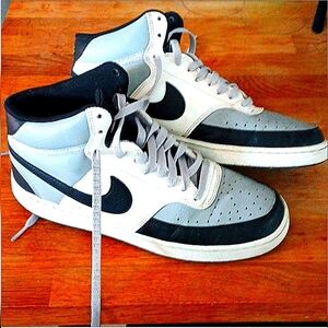 Step up your style with these sleek black and gray high-top sneakers. Perfect for any casual outing. NIKE AIRFORCE US size 9