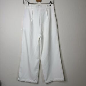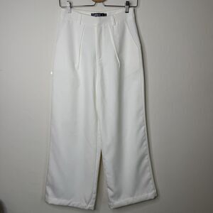 Missguided Women’s Sz 4 Wide Leg Ivory Trousers Dress Pants Pockets Minimalist