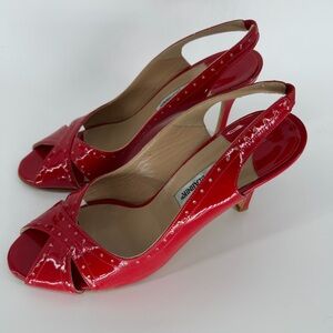 Manolo Blahnik Red Peep-Toe Slingback Heels Womens Size 40.5