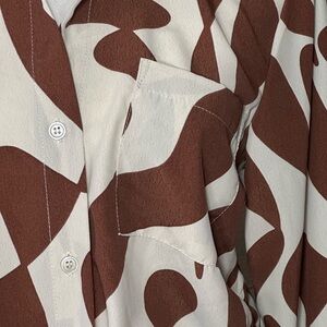 This Sanctuary top features a striking white and brown abstract pattern, offering a stylish and relaxed fit. The button-down design is complemented by a notched collar and long sleeves, making it a versatile addition to any wardrobe.