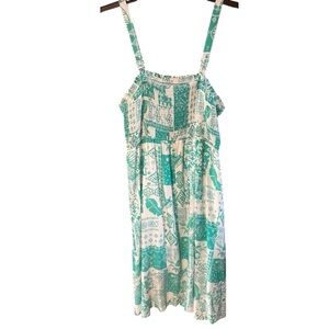 BloomChic Shirred Bodice Printed Midi Dress In True Green