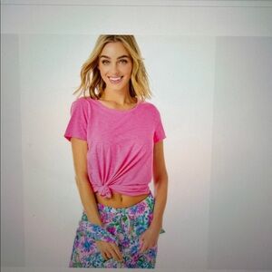 Lilly Pulitzer Hot Pink Etta Scoop Neck Top Tee. Small. Some fading to the label and generalized wash wear but in great condition.