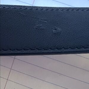One scratch on leather… (last photo) looks like someone tried to make another hole..