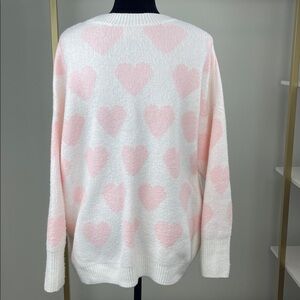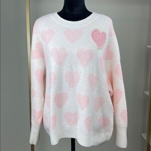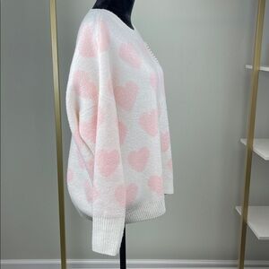 Vince Camuto Pink Heart Pattern Sweater Ladies Size L