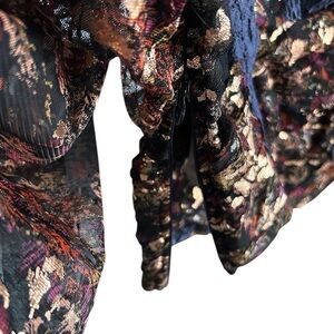 Free People Camille Top Black Embellished Blouse Black Purple Gold Sparkle XS