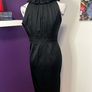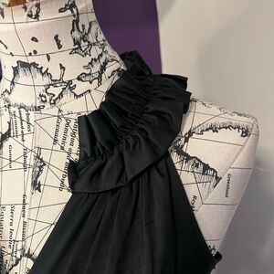 Very pretty on!! Perfect for any evening occasion out or a wedding. No marks or snaga that I can see. Love the ruffle around the neckline.