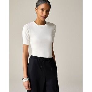 J. Crew NWT Refined rib elbow-sleeve T-shirt Crewneck Ivory Viscose Blend Medium