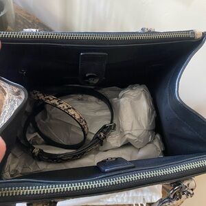 Stylish Coach satchel with snakeskin pattern. Features black and cream design. Perfect for any occasion. Original price $900 and brand new never used.