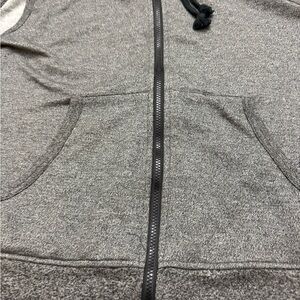 Stylish charcoal hoodie with zip closure. Features a cozy hood and soft fabric blend.