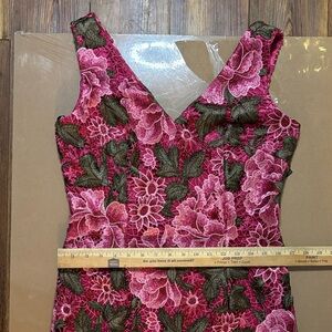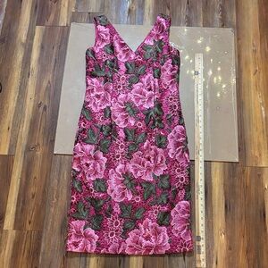 David Meister Pink and Green Floral Midi Dress 12 NWT