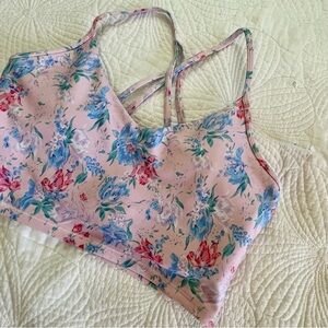 LoveShackFancy x Bandier Pink and Blue Floral Sports bra Apparel