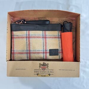 > Presenting a charming and perfectly coordinated 2-Piece Gift Set from The British Bag Company, featuring a beautiful Plaid Tweed Clutch and a matching Umbrella! Still in its original gift box, this set adds a touch of timeless British heritage style to any occasion.