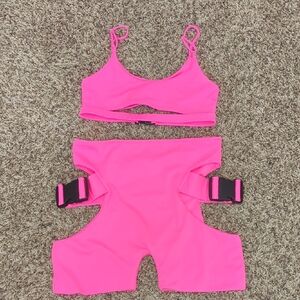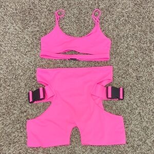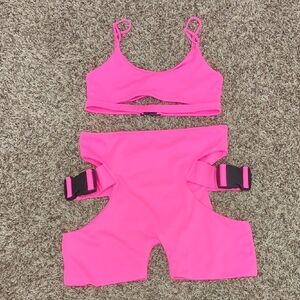 Lipt vibrant hot pink two piece cut out cropped tank / bralette and shorts set