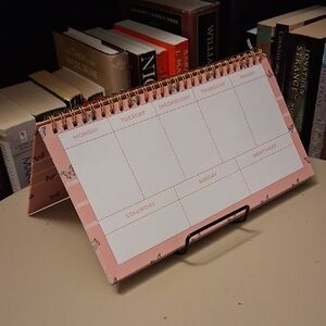 Stay inspired with this charming pink desk calendar featuring a butterfly design. Perfect for adding a touch of elegance to your home office.