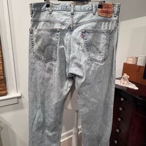 Classic straight fit. Light blue wash. Timeless Levi's style.Shows wear but still a great pair of jeans. Has a dot shown on one of the photos