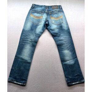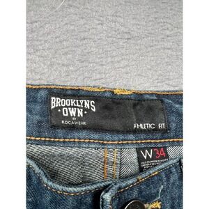 Brooklyns Own by Rocawear Jeans Mens 34x34 Athletic Fit Blue Distressed Denim