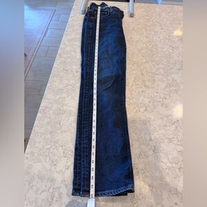12" rise, 29.5" inseam, 15.5" leg opening.
