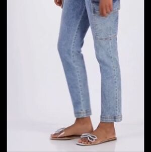 Step into elegance with these stunning rhinestone embellished slide sandals. Perfect for any occasion, these sandals feature a clear design with sparkling accents. Add a touch of glamour to your outfit.