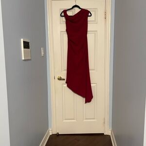Red asymmetrical midi dress. Worn once and dry cleaned afterwards. Like new condition.
