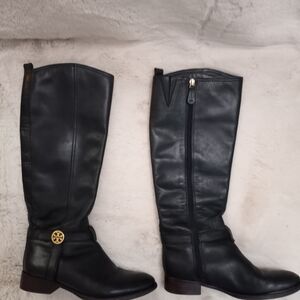Tory Burch Bristol Preppy Equestrian Boots, Buttery Soft Leather made in Brazil, Gold Logo, Some Wear on the Heels and a scuff on the heel(in pic)not noticeable when wearing, Classic, Old Money, Quiet Luxury, Side Zip for ease of wear, Quality Construction, Comfy, Tall Boot, Horse Girl, Boho, Bohemian. Western, Coastal Cowgirl, Festival, Academia, Timeless,