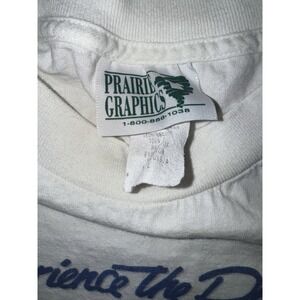Vintage 1998 NCAA College World Series t-shirt featuring Rosenblatt Stadium in Omaha, Nebraska. Bold "Experience the Dream" graphic with stadium illustration and official 1998 CWS logo. Prairie Graphics brand, made in USA, 100% cotton, size Large. A must-have piece of memorabilia for baseball fans, College World Series collectors, and Omaha history enthusiasts.