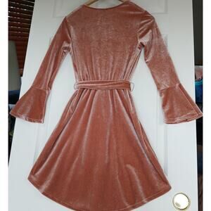 Divided Dusty Rose Velvet Dress size 4 long bell sleeves faux wrap waist tie