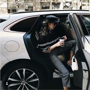 Self-Portrait counts super influencers Aimee Song, Chriselle Lim and Jamie Chung as fans of its contemporary designs. These straight tweed pants are detailed with punky zippers and woven with traditional checks that are paneled diagonally inside the leg.